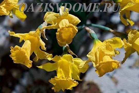 Нарциссы в горшках — это прекрасный подарок на 8 марта (и не только). Как ухаживать за подаренными вам или купленными нарциссами в домашних условиях узнайте из нашей статьи. Поставьте горшок с нарциссами в светлое место, но избегайте прямых солнечных лучей. Как вариант - подоконник с рассеянным светом. А еще лучше светлая лоджия, ели, конечно, на ней уже плюсовая температура. Оптимальная температура для нарциссов — +15...+18 градусов. Избегайте слишком жарких помещений и сквозняков. При более высоких температурах цветение значительно сократится. Особенно если горшок с цветком будет стоять недалеко от работающего радиатора отопления. Поливайте нарциссы умеренно, чтобы почва была слегка влажной, но не переувлажненной. Используйте отстоянную воду комнатной температуры. Не допускайте застоя воды в поддоне — это может привести к загниванию луковиц. Нарциссы в горшках ни пересаживать, ни подкармливать не надо. Им достаточно питания из почвенной смеси, в которой они уже растут. Когда нарцис