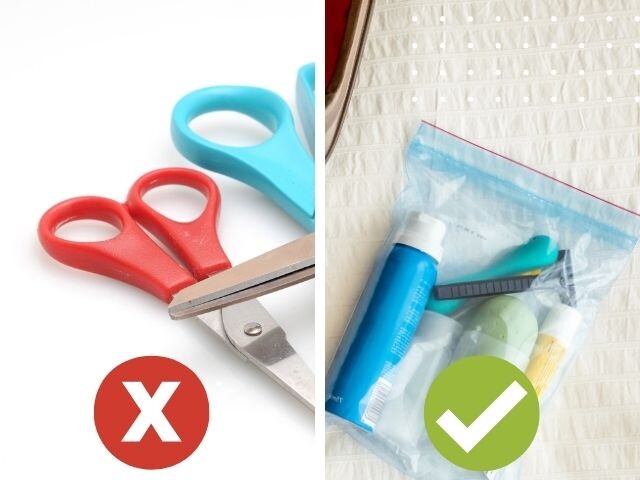 Туда же отправляются штопоры, отвертки и любые предметы, которые можно использовать как оружие.