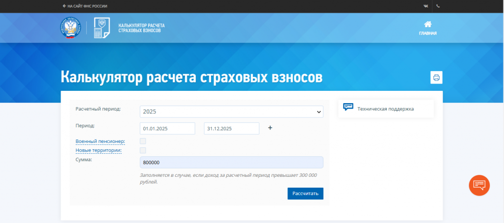 Чтобы точно понять, сколько именно нужно заплатить страховых взносов, можно воспользоваться официальным калькулятором на сайте ФНС. Он автоматически рассчитает сумму в зависимости от вашего дохода.