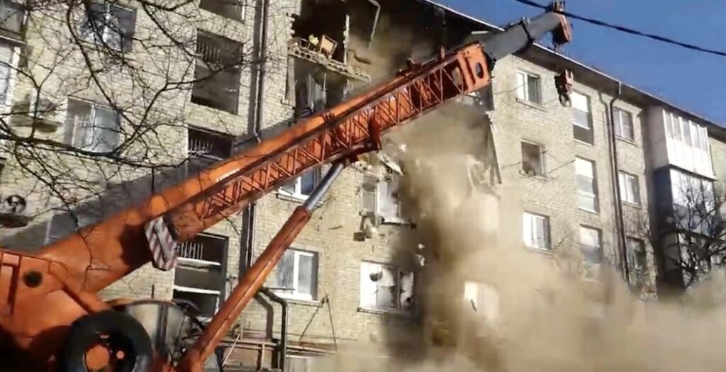 Оперативные службы продолжают работать на месте взрыва многоквартирного дома в Белореченске, сообщил глава муниципалитета Сергей Сидоренко. Чиновник опубликовал видео с места происшествия. На кадрах видно, что в результате взрыва обрушилось перекрытие между четвертым и пятым этажами одного из подъездов. Повреждены четыре квартиры. Специалисты убирают выбитые плиты с помощью подъемника. Провели КЧС, определили механизм действий по устранению последствий взрыва. Обозначил ответственных, поставил каждому задачи. Губернатор края Вениамин Кондратьев поручил мне максимально охватить заботой жильцов разрушенного дома и оперативно устранять последствия. Выполним, — написал Сидоренко в своем телеграм-канале. Ранее «Краснодарские известия» писали, что взрыв в пятиэтажном жилом доме в Белореченске произошел ночью 5 марта. В результате пострадали пять человек, из них двух доставили в больницу. После случившегося в Белореченске ввели режим ЧС. Прокуратура организовала проверку. СК возбудил уголовно