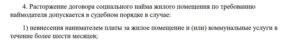 Однако, когда за коммунальные услуги такие жители перестают платить, то власти, естественно, ставят вопрос о расторжении договора социального найма в порядке части 4 статьи 83 ЖК РФ