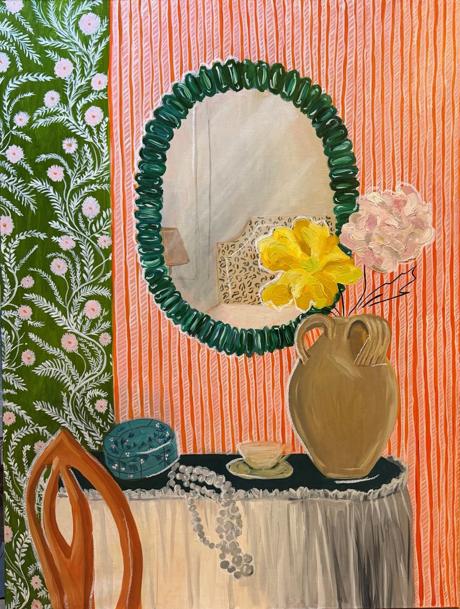 До 27 марта в Postrigay Gallery проходит персональная выставка современной художницы Надежды Ягофаровой «Зеркало дней». В экспозиции представлены натюрморты и арт-объекты, напоминающие о том, что даже в простых вещах скрыта неожиданная красота. Специально для «Сноба» Надежда рассказала о тех произведениях, на которые стоит обратить особое внимание. Эмоциональное впечатление от цветов, которые я вижу в природе, на картинах других художников, выставках, хочется передать в своих работах. Картина «Зеркало и жемчуг» — пример такого вдохновения. Она посвящена моей любви к цветному антикварному стеклу, особенно муранскому. За годы поездок на антикварные ярмарки у меня сложилась небольшая коллекция. Это зеркало я увидела в галерее в Ницце десять лет назад, но тогда не купила, а просто сфотографировала. Оно не выходило у меня из головы. И вот я нашла его фото и поместила на холст. Эта работа про детское предвкушение праздника. С каждым из предметов, изображенных на холсте, у меня есть особая ис