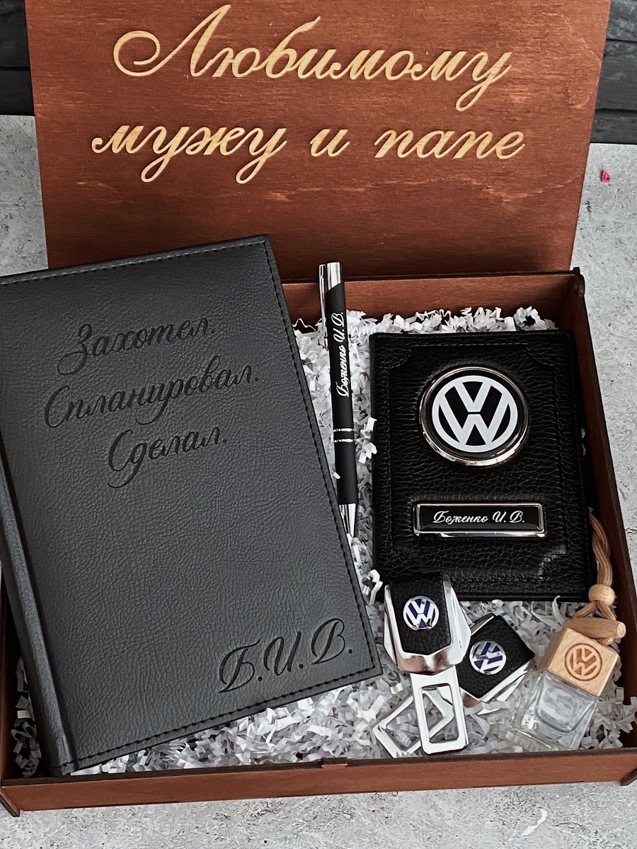 Подарочный набор для любимого мужа : ✔️Ежедневник с индивидуальной гравировкой ✔️Именная металлическая ручка ( покрытие софт тач) ✔️Обложка на автодокументы с маркой авто и гос.номером/именем ✔️Заглушки с логотипом авто ✔️Автопарфюм с логотипом авто ✔️Деревянный бокс с гравировкой Такого подарка больше не будет ни у кого , ведь он делается индивидуальной для вашего любимого ❤️🔥 Вы сможете вложить всю душу и любовь в его создание - это оценят!