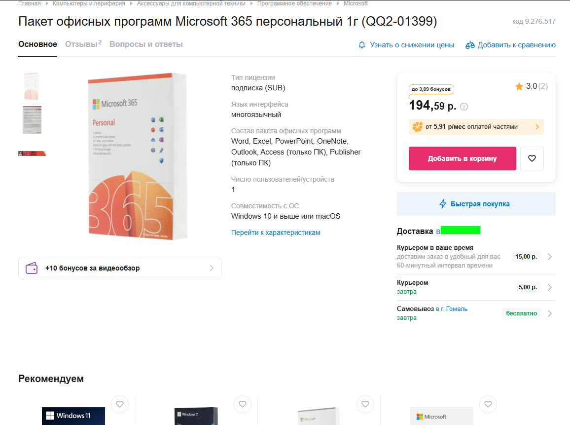 Так как у меня уже подходит срок подписки, в конце марта я решила приобрести ключ Microsoft Office 365 персональный в 21vek.by и таким образом продлить подписку еще на один год. В карточке товара не было ни слова о региональной привязки ключа, даже сейчас магазин не внёс изменений в описание товара. Вот как выглядит карточка товара на сайте магазина: