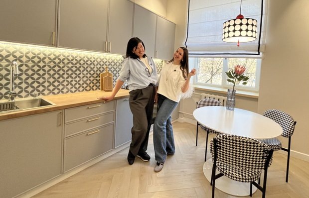 Удобная планировка, очень много хранения и классных решений Как бюджетно преобразовать «убитую» сталинку в комфортное и стильное жилье? Узнайте в нашем новом румтуре! Кратко о квартире: квартира находится на Ленинском проспекте в сталинском доме 1958 года постройки. На момент покупки жилье было в сильно запущенном состоянии, но высокие потолки и девятиметровый коридор покорили будущих владельцев. В квартире сделали капитальный ремонт и перепланировку, в результате которой удалось обустроить кухню-гостиную, две изолированные спальни, коридор и совмещенный санузел. Кухню собрали из стандартных готовых модулей, а холодильник выбрали отдельно стоящий, что позволило существенно снизить затраты. Столешница, выполненная из ЛДСП, гармонично дополнила общий стиль гарнитура, который (без техники) обошелся всего в 56 тыс. рублей. Чтобы сохранить уникальный дух сталинской квартиры, подчеркнуть величие высоких потолков и традиционные особенности архитектуры, напольные и потолочные плинтусы сделали