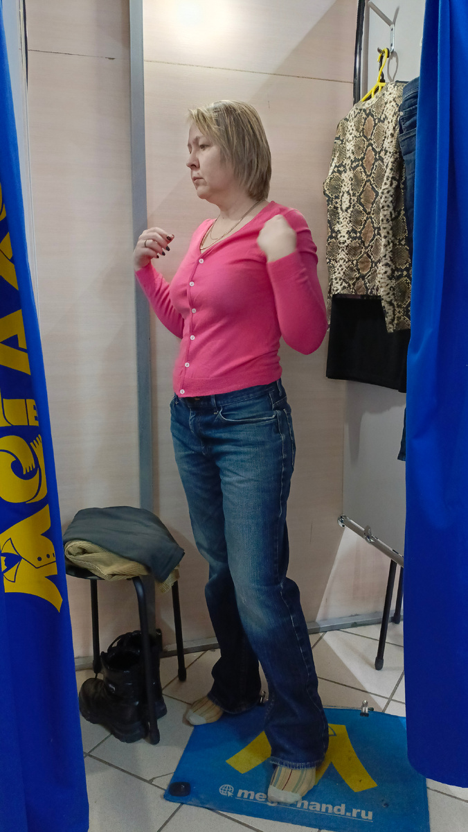 Приветствую всех на своём канале! Сегодня покажу вам, что ещё было найдено и взято в примерку в предпоследнее наше посещение в Мегахенд. Последнее состоялось сегодня, и скидка была уже 70 %. Дальше там уже делать будет нечего. До нового завоза. Покупками эти вещи не стали. Кардиган маловат и тесноват. А кроме того имеет явный дефект. Но по составу хорош 👍. Захотелось примерить шкуру змеи😄. Правда, она полиэстеровая, но тут уж ничего не поделаешь: какая змея такая и шкура😄 Поговаривают о скором возвращении некоторых европейских брендов. Возможно, этот испанский массмаркет тоже будет среди возвращенцев. У нас даже торговые площади, которые они занимали прежде, до сих пор никем не заняты. Ждут, наверное 😄 "своих". Никогда прежде не примеряла такую одежду, а тут, вдруг захотелось 🤣. Аппликация впереди выполнена очень топорно. Жесткая. Наверное, через несколько стирок начнёт кусками отваливаться от футболки. Ранее бренд из Великобритании. В 2022 году стал принадлежать китайском