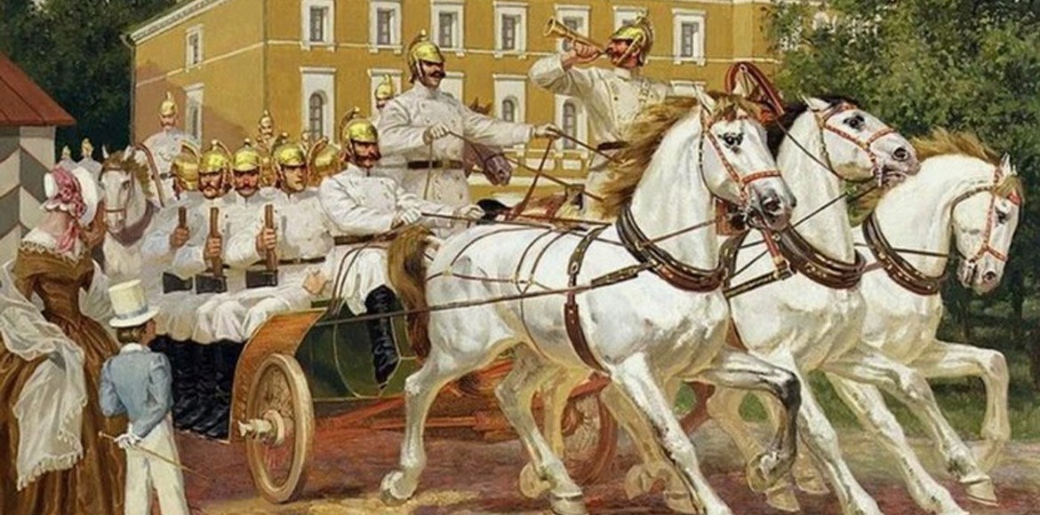«Пожары в Москве были частым явлением. Деревянный город горел охотно, и пожарные команды всегда были начеку. Пожарники едут! - разносилось по улицам, и народ расступался, освобождая дорогу конным обозам, мчавшимся на бешеной скорости к месту происшествия.