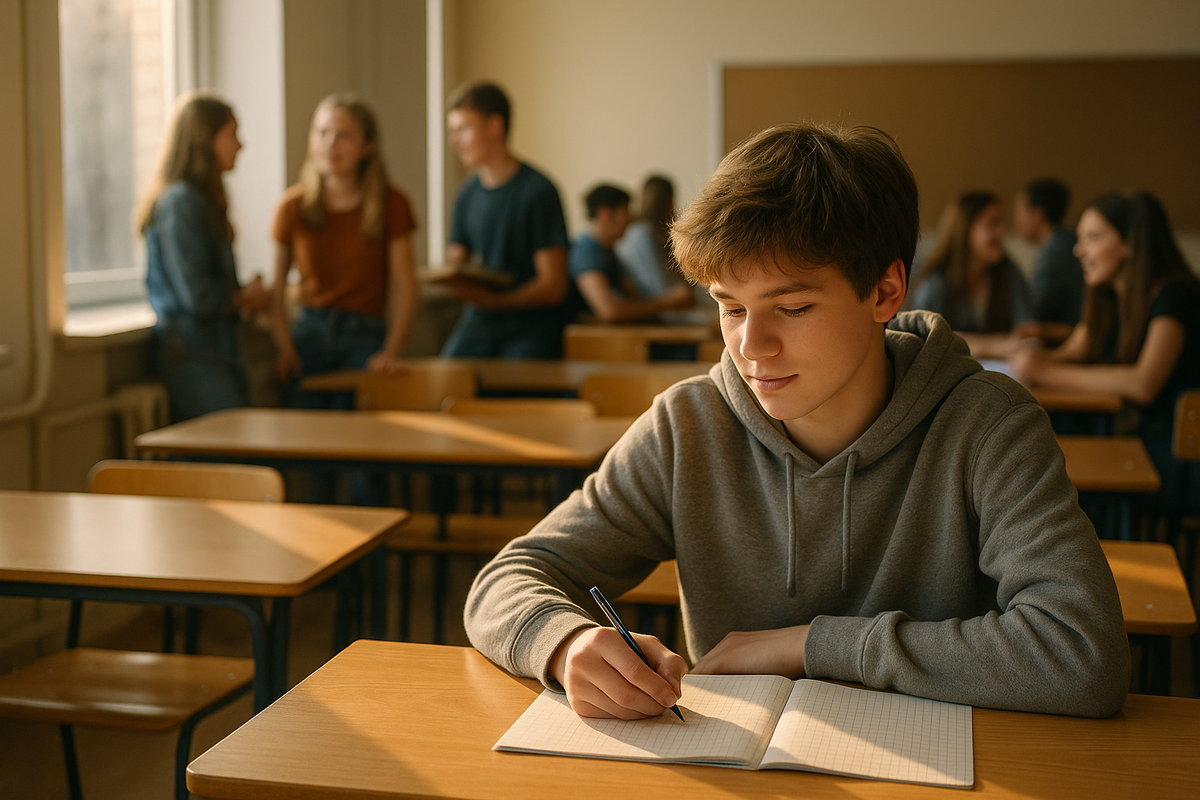Илья сидел за последней партой у окна, машинально водя ручкой по клеткам тетради. На перемене вокруг него кипела жизнь: кто-то шумно обсуждал домашку, кто-то шутил, а кто-то уже строил планы на выходные.