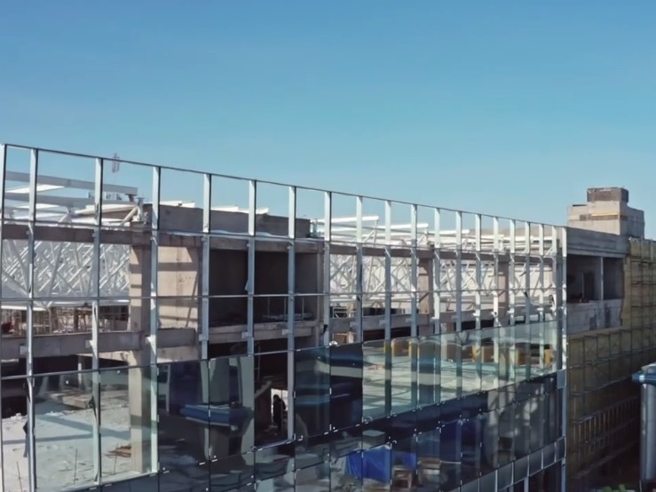 На новом терминале аэропорта «Оренбург» приступили к остеклению «паутинки» фасада