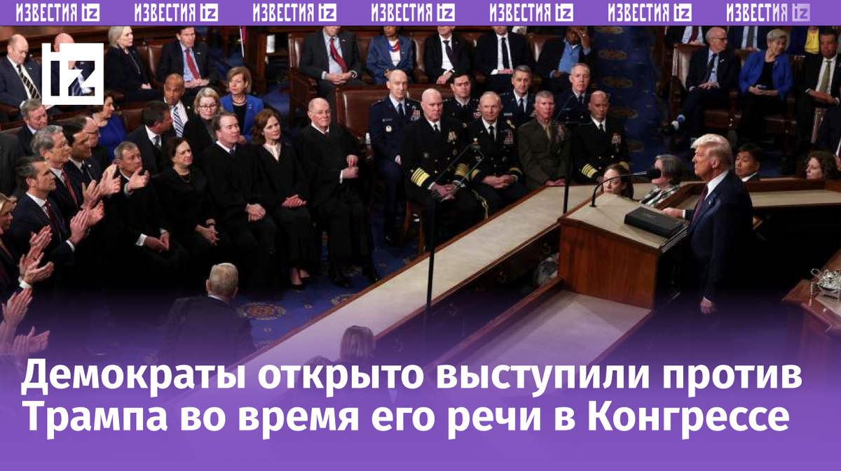 Вечером 4 марта по времени Вашингтона (в ночь на 5 марта мск) президент США Дональд Трамп выступил перед обеими палатами конгресса с одной из самых длинных речей, которая продолжалась 1,5 часа. Во время выступления представители Демократической партии выкрикивали обвинения и пытались освистать действующего президента, а сенатор Эл Грин даже был удален из зала. Подробности — в материале «Известий». Конгрессмен от Демократической партии США Эл Грин был выведен из зала за попытку сорвать выступление Трампа: он несколько раз перебивал главу Белого дома. Также во время обращения Трампа Грин кричал с места, что у Трампа «нет мандата и полномочий». В результате спикер палаты представителей Майк Джонсон приказал охране вывести Грина из зала. Позднее Эл Грин объяснил свой поступок. «Это стоит того, чтобы народ знал, что есть люди, которые собираются противостоять Трампу», — заявил политик. После этого представители Республиканской партии поднялись и начали скандировать в поддержку Трампа: «США,