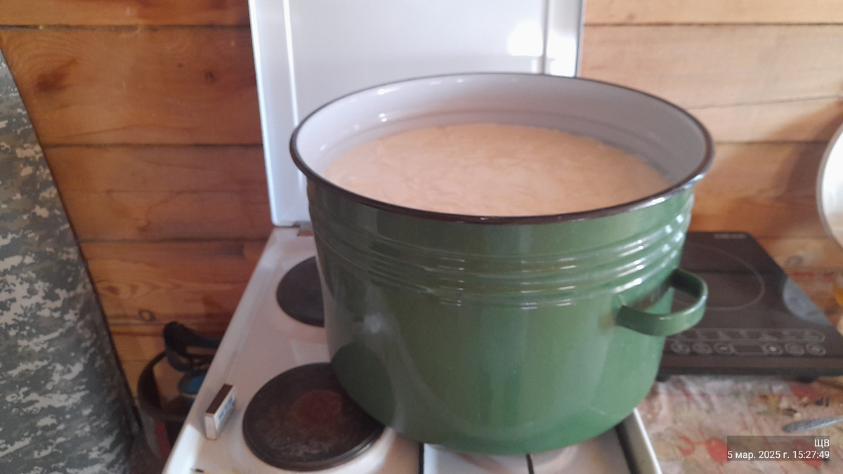 Утром Сережу на рыбалку проводила, отдохнула немного. После дойки трех- коров то)))) И начала приготавливаться к плетению кос из заготовки,что вчера наварила. Всем моим самым замечательным по самому наидобрейшему и самым наидобрейшим по самому замечательному!!! Сыр новом доме первый раз варила. Формы все там,(В старом) подносы и прочие принадлежности там. Пока это все поперетаскали. Пока перемыла- месяца три не варила. Лежало там все, пылилось. Пока кое как приспособилась сливать зерно...Да еще Сережа мне вместо двадцати литров бухнул 25, а я даже внимания не обратила. Это значит, надо на одну форму больше готовить.. Плита от стола с другой стороны... Надо теперь привыкать. Приспосабливаться. Вот вчера наварила две качотты да для кос заготовку, сегодня с утра начала приспосабливаться к плетению. На стол возле плиты забыла купить клеенку. Там тряпочная скатерть. Все со стола убрала, застелила пленкой. В воде же дрызгаться. Пока все приготовила, пока сбегала в старый дом за перчатк