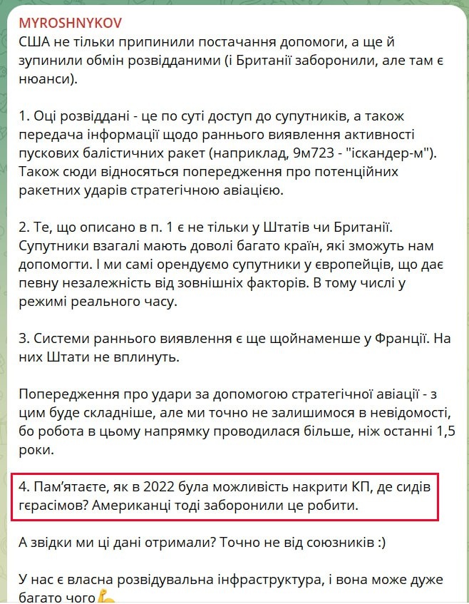 Штатовцы запретили в 2022 году Украине нанести удар по командному пункту, где находился глава ГШ Герасимов. Конечно, это потому, что Герасимов — слишком ценный кадр. При нем Россия успешно проводит СВО. Так что часть Курщины находится под оккупацией. НИ ОДНА из целей СВО не достигнута. Так что понятно, почему США так беспокоятся по поводу Герасимова.