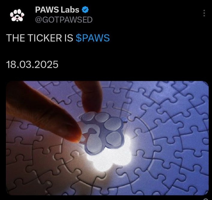 🐾 PAWS ЛИСТИНГ 18 МАРТА!! 💰 Наконец-то появилась официальная дата листинга лапок) Ранее они давали подсказку, что будет во вторник, ну а сегодня появился официальный анонс - листинг 18 марта 2025 года! 🚬 Судя по цене ваучеров 8888 токенов будут равняться примерно 15 долларам. Можно, также, попробовать встать в шорт, ведь продавать на начальных этапах будет очень много человек (главное не брать высокие плечи).