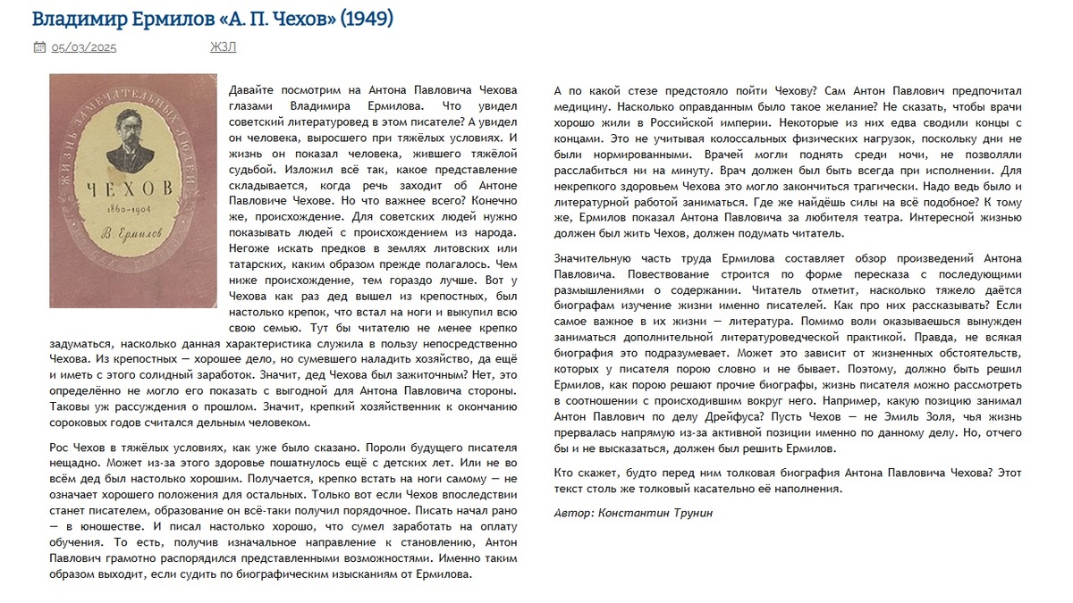 Владимир Ермилов "А. П. Чехов" (1949) | Критика