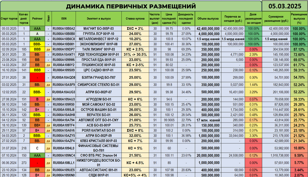 ⭐️ Итоги дня сегодня вновь коротки, ибо убегаю умнеть :) Так что картинки вам в помощь, дабы составить представление о сессии! 😈 Недельная инфляция составила 0,15% против 0,23% за прошлый период. Норм, не более, хотя бы не выросла :) ➡️ Любителям онлайн-таблиц помогут обновленные данные по ссылке: https://docs.google.com/spreadsheets/d/1sProa0T6KU5a-_kPbdbaKC1no4RxJlfHaLReamDP320/edit?usp=sharing 😌 Приятного вечера, дамы и господа! 〰️〰️〰️〰️〰️〰️〰️〰️〰️〰️ ▶️На развитие канала в марте собрано: 🎯 12058₽ □□□■□□□□□□ 33000 ₽ (+4529) Данные обновляются по вечерам в будни в одном из постов Ссылки на донат: - https://www.tinkoff.ru/cf/5S8F7S1xOAu (без комиссии в Т-банке) - https://pay.cloudtips.ru/p/a44f74d4 (возможны комиссии) - https://t.me/tribute/app?startapp=d4EI (разовый / регулярная донат-подписка, здесь комиссия на мне) 〰️〰️〰️〰️〰️〰️〰️〰️〰️〰️ #облигации #статистика