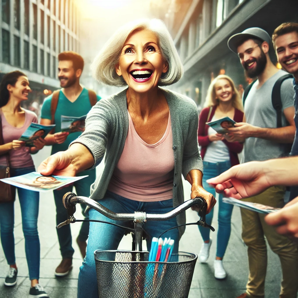 Я просто представил, как она на велике несётся за клиентами и говорит: