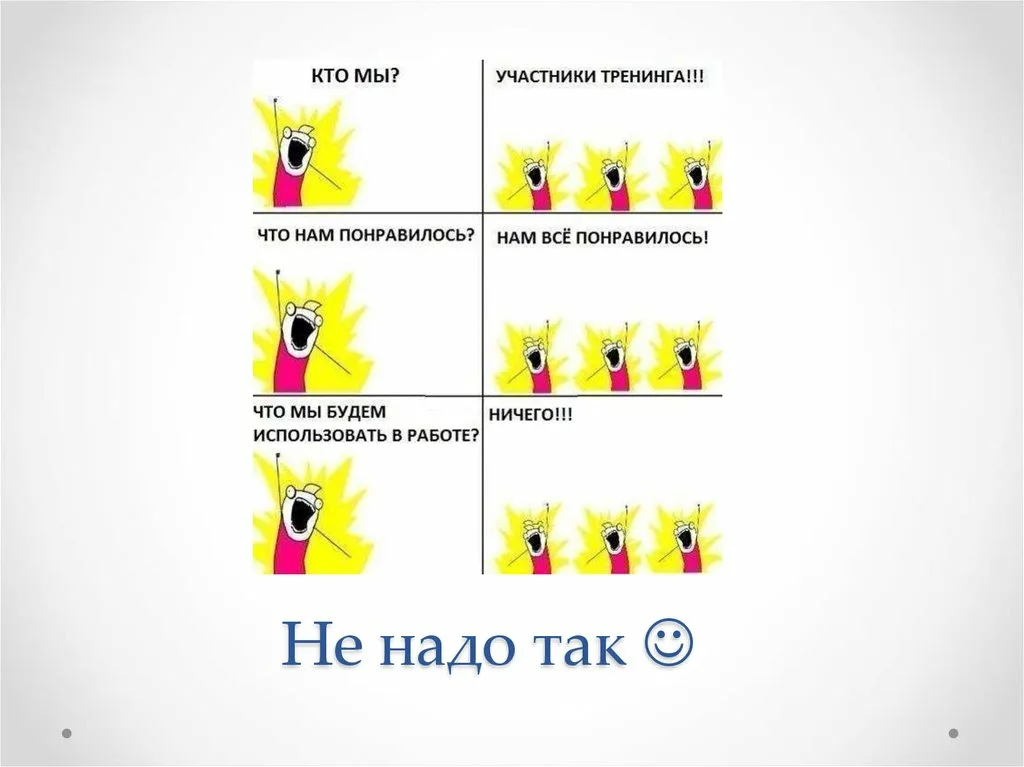 А если посмотреть повнимательнее, то продавцы попросту не делают всего того, о чем им говорили на обучении. Номер на тренинге отбыт? Отбыт. Нужные тесты сданы? Сданы. Что вам еще нужно? А нужно применение.