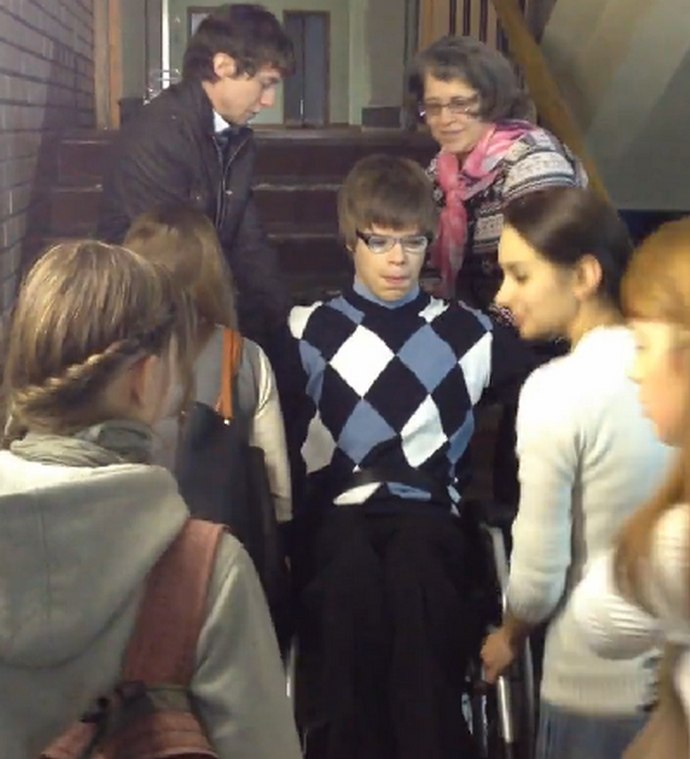 Глеб Кузнецов болен ДЦП и передвигается на коляске, что до сих пор не мешало ему блестяще учиться и общаться с многочисленными друзьями. Именно они и мама Глеба обратились за помощью после безуспешных попыток решить эту проблему с руководством вуза. Гуманитарный вуз, почти одни девушки. И хрупкие студентки Московского государственного лингвистического университета вынуждены на руках носить однокурсника Глеба Кузнецова на второй этаж. Инвалидную коляску подхватывают и случайно проходящие парни. Глеб сидит смирно и крепко держится за колеса, чтобы не упасть. Поступая в МГЛУ, инвалид 1 группы понимал, что дорога к знаниям будет непростой. На занятия вечернего отделения Глеба возит мама. Но в вузе пошли навстречу: ради парня в коляске все педагоги приходили на первый этаж. А в этом сентябре начался новый курс по языкознанию, и его преподаватель сделала однозначное заявление. «Она сказала, что отказывается преподавать в 101-й аудитории, потому что ей там холодно, и она из-за нас помирать не