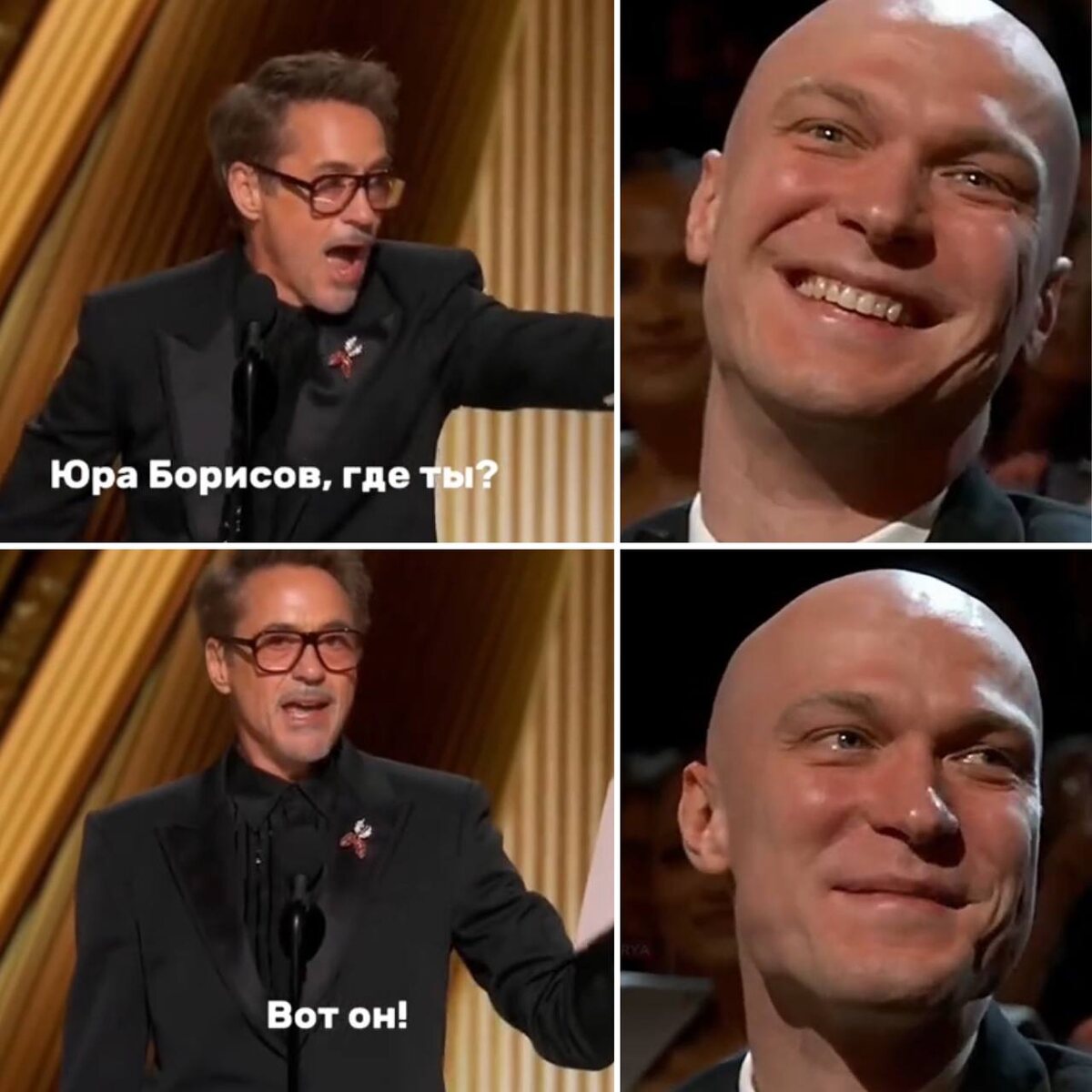 Роберт Дауни-младший хвалит Юру Борисова на сцене «Оскара»! Разве несколько лет назад кто-нибудь поверил бы в это? Но сегодня ночью сон стал реальностью. Во время вручения «Оскара» за «Лучшую роль второго плана» Дауни-младший обращался к каждому номинанту – первым в списке был Юра Борисов.