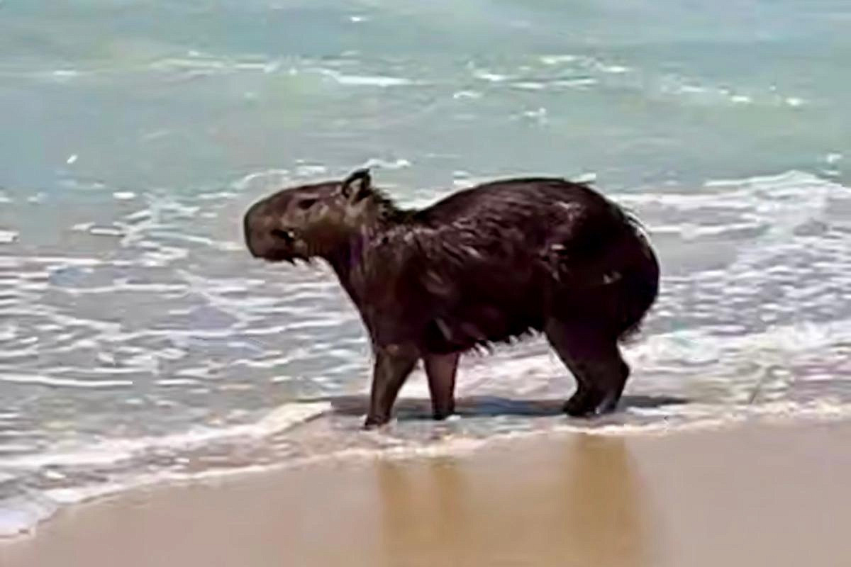 Капибара удивила отдыхающих на пляже в Рио-де-Жанейро Отдыхающие