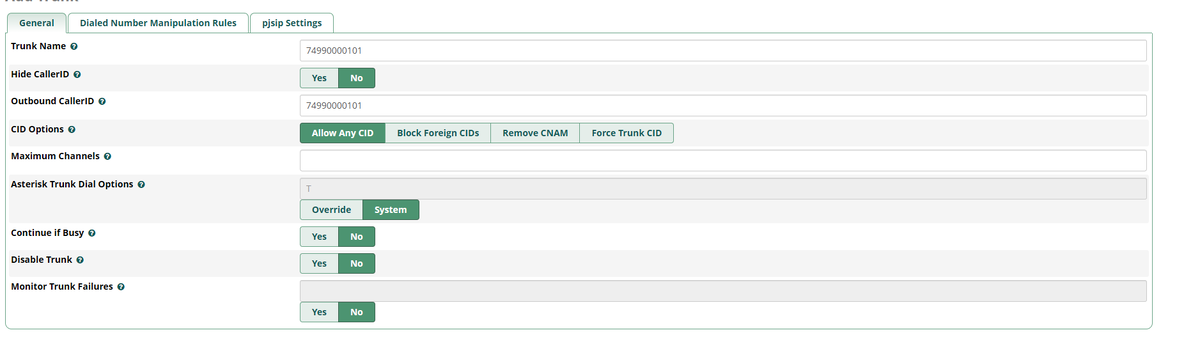 Создаем pjsip транк на freePBX. Обзываем номером телефона или как вам хочется