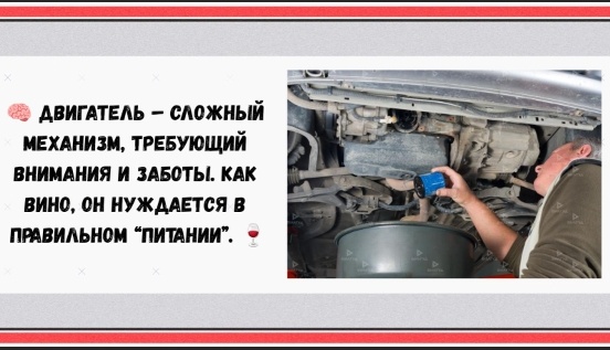 Представьте: Ваш двигатель – это тонкий швейцарский механизм. ⚙️ Если не смазывать его вовремя, шестеренки начнут изнашиваться, и он остановится. ⏰ Что мы предлагаем? 1. Индивидуальный подход: Подбираем масло и фильтры, соответствующие не только техническим требованиям, но и стилю вашей езды. 🏎️ Или вы любите спокойные прогулки по городу, или вы гонщик, которому важна каждая секунда? 🏁 2. Профессиональная замена: Наша команда – это эксперты, знающие свое дело. 🎓 Мы соблюдаем все технологии и стандарты, чтобы гарантировать безупречный результат. 3. Забота о деталях: Проверяем состояние всех узлов и агрегатов, чтобы вовремя выявить возможные проблемы. 🧐 Мы не просто меняем масло, мы заботимся о вашем автомобиле в целом. 4. Долгосрочная перспектива: Мы понимаем, что регулярное обслуживание – это инвестиция в будущее вашего автомобиля. 💰 Это позволяет избежать дорогостоящего ремонта и продлить срок его службы. Зачем откладывать то, что можно сделать сейчас? 🤔 Не ждите, пока ваш