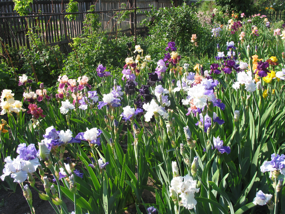 Здравствуйте, меня зовут - Оксана. И я...садовый лентяй. Сознаюсь честно. И мне даже ни капельки не стыдно за это свое качество. Ибо в саду я в одно свое лицо хозяйничаю. И себя я, как ни странно, люблю и жалею. Поэтому растений, требующих от садовода постоянного пригляда и ухода, у меня нет. Или есть, но в минимальном количестве. Тем более про "пригляд-то" я знаю не понаслышке. И про уход тоже ведаю.. А как "уведала" я уход за ирисами бородатыми сортовыми, чтобы цвели те товарищи до "захватывания духа", то сразу ж и отказалась от всех подарков и презентов из сада одного, где жила невероятная коллекция члена ирисоводов России. Ибо я не готова за ними ТАК бдить. Чтобы увидеть эту феерию. Место выбери солнечное. Без затенения. В идеале только для них (забываем про дизайн) и обзови ИРИДИАРИЕМ Почва должна быть легкая, воздухопроницаемая, без замокания, питательная. Мульчу осенью на выпирающие клубнелуковицы сложи. А до этого прикрой их пленочкой, чтоб до момента "насыпь мульчи" клубн