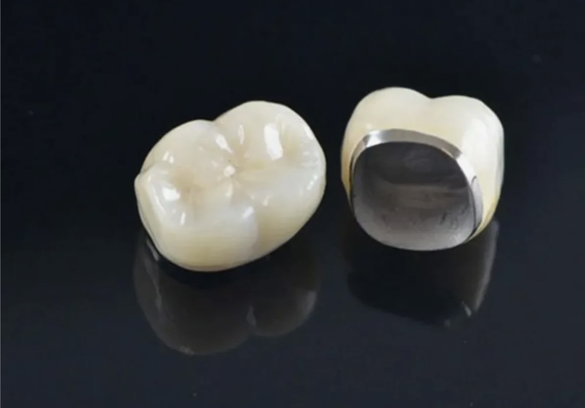 Такая коронка представляет собой металлическую основу с нанесённым слоем керамики сверху, её надевают на обточенный зуб или используют при изготовлении мостовидных протезов. Металлокерамика довольно прочная, хорошо выдерживает нагрузку. При образовании скола легко реставрируется не требуя демонтажа. Внешне очень схожа с эмалью и есть возможность подбора оттенка. Со временем не стирается и не меняет цвет. Относительно не дорогая. Для её установки нужно сильно обточить зуб, так как конструкция достаточно объёмная. Есть вероятность оголения металла при рецессии десны, что будет заметно как тёмная полоска у десны. Отсутствует прозрачность, поэтому не подходит для фронтальных зубов по эстетическим меркам. Не исключается возникновение аллергической реакции на металл. Коронки отличаются материалом своей основы: Обычный сплав самый бюджетный, может окисляться под действием слюны. Золото тоньше, лучше садится на зуб, но стоит гораздо дороже. Титан легкий, гипоаллергенный. Сложе