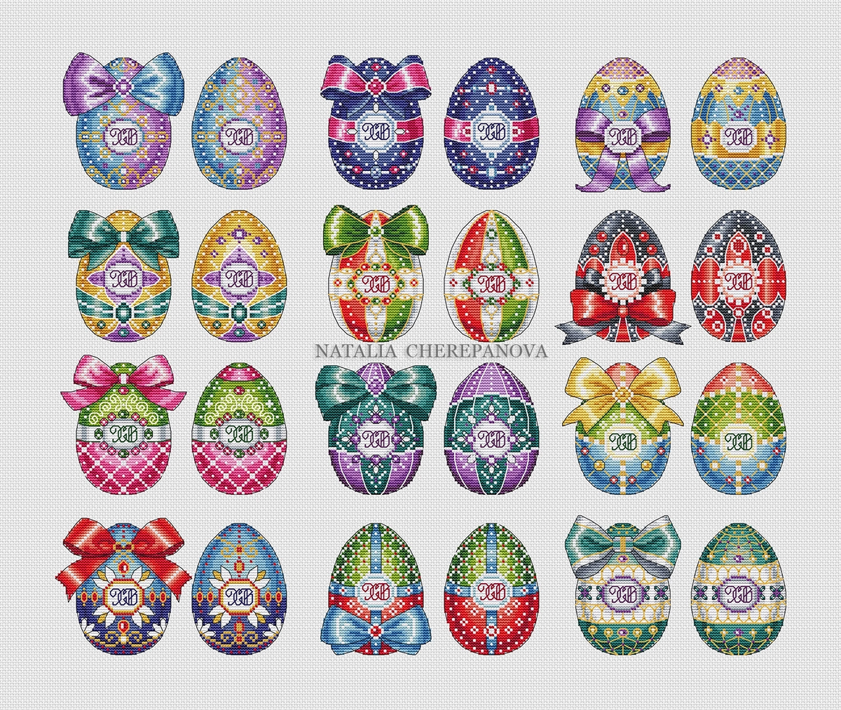 Вот такую красоту предложила вышивальщицам Наталья Черепанова. А у меня дерево Пасхальное, и места на нем хватает). Я выбрала яйцо «Малиновое» на первый отшив.