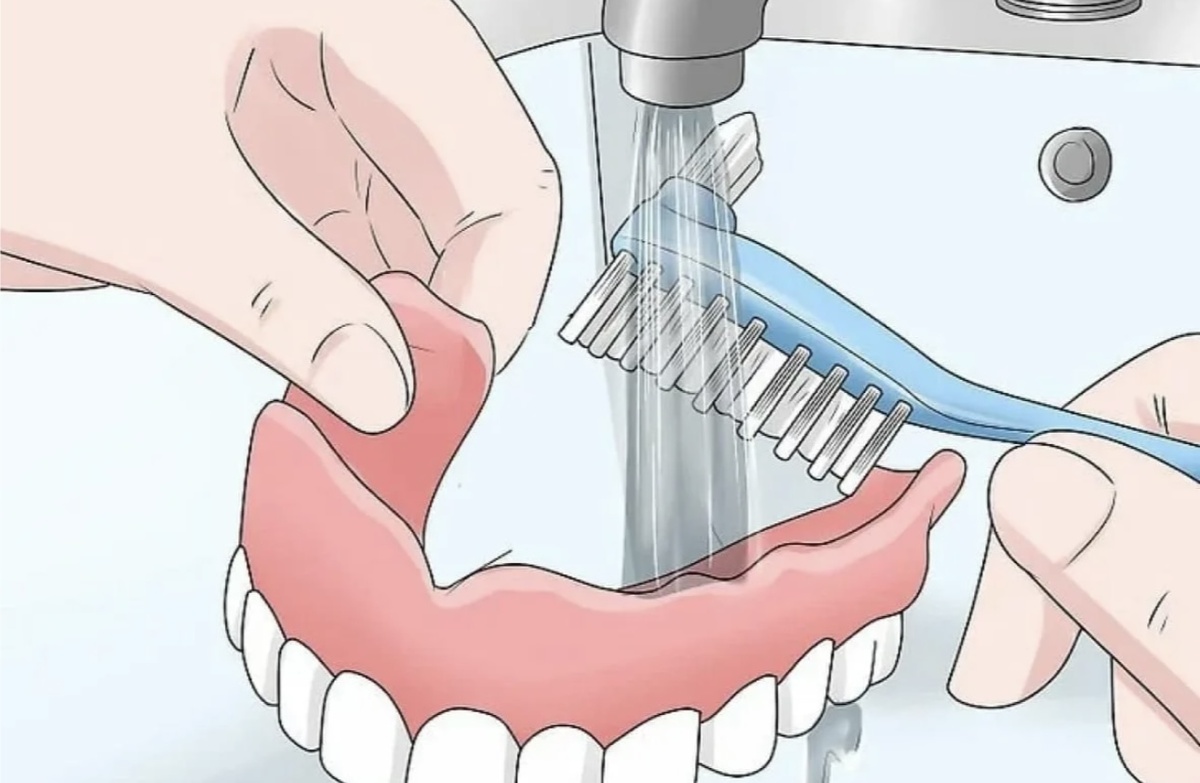 После каждого приёма пищи протез надо промыть под проточной водой, чтоб удалить частички еды под ним и избежать дискомфорта и размножения микробов.