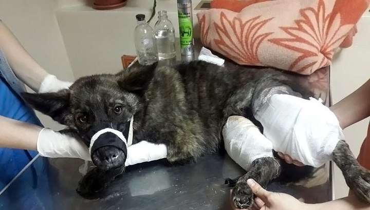 Скорее всего, собаку сбила машина, он отлетел от удара, а затем по нему проехались во второй раз. Сейчас псу, которого назвали Пират, уже сделали операцию. Она была очень сложной и длилась 8 часов. Волонтеры собирают средства, чтобы оплатить услуги ветклиники, в которой собаку оперировали в долг, и надеются найти Пирату хозяев – хотя бы на время реабилитации.