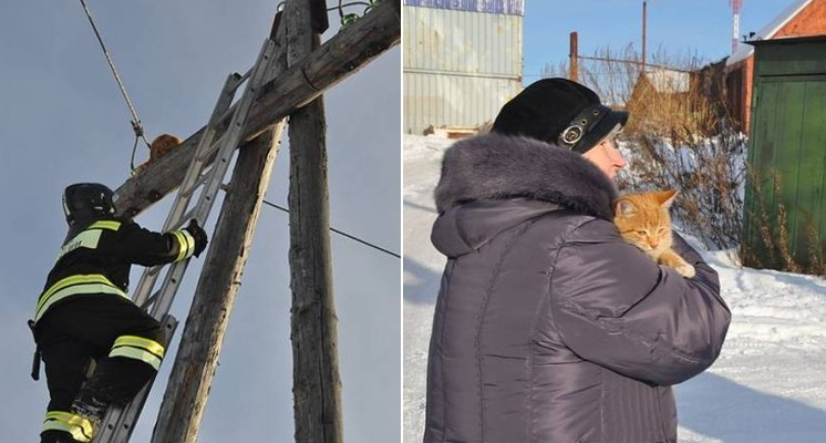 В пожарно-спасательную службу поселка Авача на Камчатке поступил необычный звонок: женщина в слезах просила спасти… кота, который «взлетел» на 12-метровый столб, спасаясь от собак, и вот уже два дня не может спуститься. Целое отделение пожарной части № 3 вызвалось помочь котику. Однако сразу же спасти животное не удалось – к столбу, на котором сидел кот, подходили высоковольтные провода. Так что потребовалась еще бригада энергетиков, которые по вызову обесточили линию. После этого дело было за малым – кота спустили на землю за считанные секунды. И та самая звонившая, Людмила Михайловна, забрала рыжего себе – решила, что на его бездомную долю выпало уже достаточно приключений.