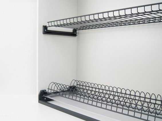 Всем привет! С вами снова ваш помощник в мире мебели - Катя. Сегодня поговорим про сушки для посуды: - какие бывают; - куда размещаем; - чем заменяем. На языке производителей мебели они бывают 2х видов: На этом тему можно было бы считать закрытой, но давайте на примерах. Цены варьируются от 2-3 тыс до 20тыс. В зависимости от ценовой категории они отличаются плотностью и качеством металла, доп водосборниками и регулировкой установки. Есть варианты для угловых шкафов: Если бюджет позволяет, то можно найти опускающиеся варианты: Вариант хороший, но стоит достаточно дорого. В целом, такая система подойдет и просто для хранения, не обязательно посуды. Данные сушки глобально можно поделить на 2 вида: Их достаточно большое разнообразие в разных компаниях. Вот несколько примеров: Выкатные сушки, конечно, дороже тех, которые ставятся в верхние шкафы, но можно подобрать вариант под свой бюджет. Цены варьируются, в среднем, от 12 до 40 тыс. Можно найти чуть дешевле или дороже, но я обозначила
