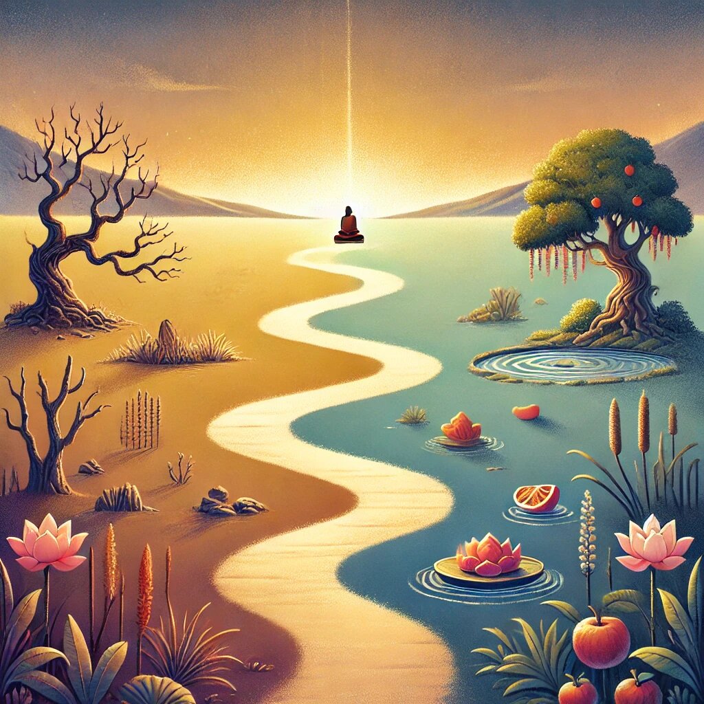 Однажды к Будде пришёл молодой ученик, который был полон рвения к практике. Он медитировал по многу часов в день, почти не ел, мало спал и изнурял себя в попытках достичь просветления. Будда посмотрел на него с мягкой улыбкой и спросил: — Ты умеешь играть на ситаре? Ученик удивился такому вопросу, но честно ответил: — Да, Учитель, немного. — Скажи, что случится, если натянуть струны слишком туго? — спросил Будда. — Они могут порваться, — ответил ученик. — А если они будут слишком слабыми, не натянутыми? — Тогда они не издадут чистого звука. Будда кивнул: — Так же и с практикой. Если ты слишком напрягаешь себя, ты можешь сломаться. Если слишком расслаблен — не достигнешь ничего. Истинный путь — в равновесии, в умеренности. Ученик понял урок и с тех пор стал практиковать осознанно, сохраняя баланс между усилием и покоем. --------------------------------------------
