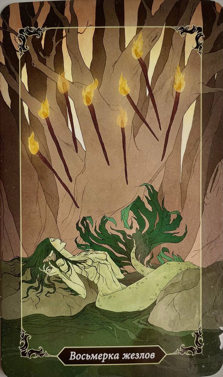 Восьмерка жезлов Ответ Вселенной Восьмерка жезлов — карта кармы. Намерение, отправленное во внешний мир, возвращается к нам в троекратном размере. Вспомните кармическое правило: то, что вы выпускаете во внешний мир, в конечном итоге вернется к вам. Эта карта — ваша энергия в действии. Она еще не пришла в конечную точку, но мчится к результату на огромной скорости. Ваше намерение уже отправлено, и в скором времени оно реализуется. Курс изменить уже невозможно. Вы сделали все, что могли на данный момент. Просто наблюдайте за тем, как развернется ситуация. Бездействие тоже является разновидностью действия. Действительно ли вы хотите оставаться в той точке, которую проживаете сейчас? Отпустите свои страхи перед выходом из зоны комфорта. Не бойтесь рисковать. Самое сложное — это сделать первый шаг: отправить намерение и позволить себе прожить его. Совет от карт: Задумайтесь о том, что вы когда-то согласились на ту жизнь, которую проживаете сейчас. Так почему бы не сформировать жизнь еще лу