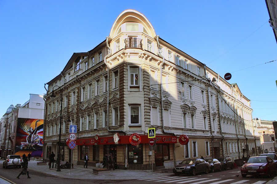 На Большой Дмитровке стоит дом купцов Живаго (Большая Дмитровка, дом 12/1, строение 1).