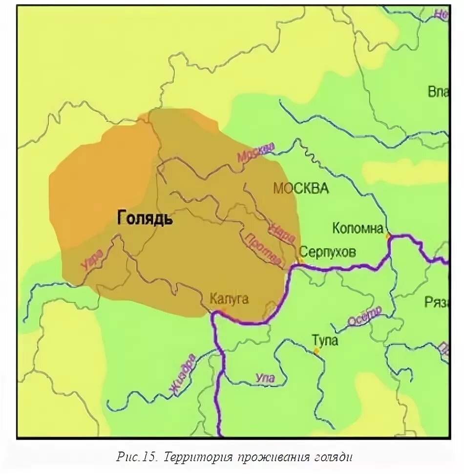 «Голядь, племя, известное в нач. 2-го тыс. н. э., которое относят к так называемым днепровским балтам. Занимало территорию в бассейне реки Протва, правого притока реки Москва. Археологические следы голяди дискуссионны. После массового расселения восточных славян к концу 1-го тыс. н. э. оказалось между вятичами и кривичами, которые частично ассимилировали голядь. В 1058 разбито киевским князем Изяславом Ярославичем. Последнее летописное упоминание голяди относится к 1147, когда на племя совершил поход новгород-северский князь.» (Большая Россиийская Энциклопедия - БРЭ)