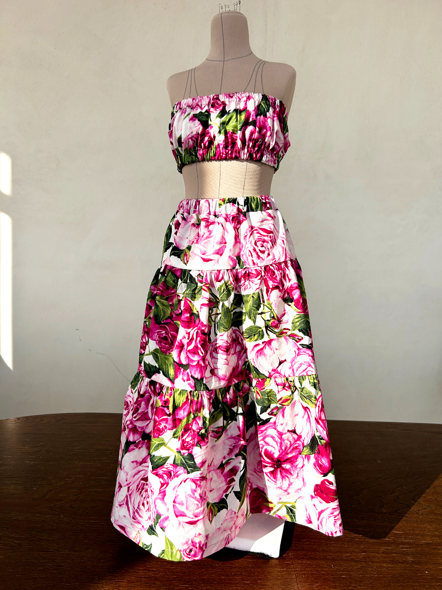 Это самая простая модель юбки, которую вы можете сшить, не имея навыков моделирования. Ярусная юбка с воланами и поясом на резинке. Нужны всего две мерки – обхват бедер и длина изделия. Эта юбка сшита из тонкого 100 % хлопка-сатина, она хорошо держит форму, получаются такие ломаные линии на воланах. Данную модель можно сшить из других материалов: вискоза, лен, хлопок-шитье, тонкий деним - она будет выглядеть совершенно по-разному. Пластичные струящиеся ткани мягко облегают фигуру, красиво развеваясь при движении, а плотные, формоустойчивые - делают акцент на пышности и красивых заломах. Посмотрите, как выглядит такая юбка, выполненная из разных видов ткани. В основе такой юбки заложены прямоугольники, по краю делают сборку и стачивают между собой. Таких ярусов может быть любое количество, это зависит от вашей модели. В моем примере – 3 яруса и притачной пояс. Пояс может быть и цельнокроеный, для этого нужно увеличить ширину верхнего яруса на ширину пояса. Для мерки ОБ беру половинное з