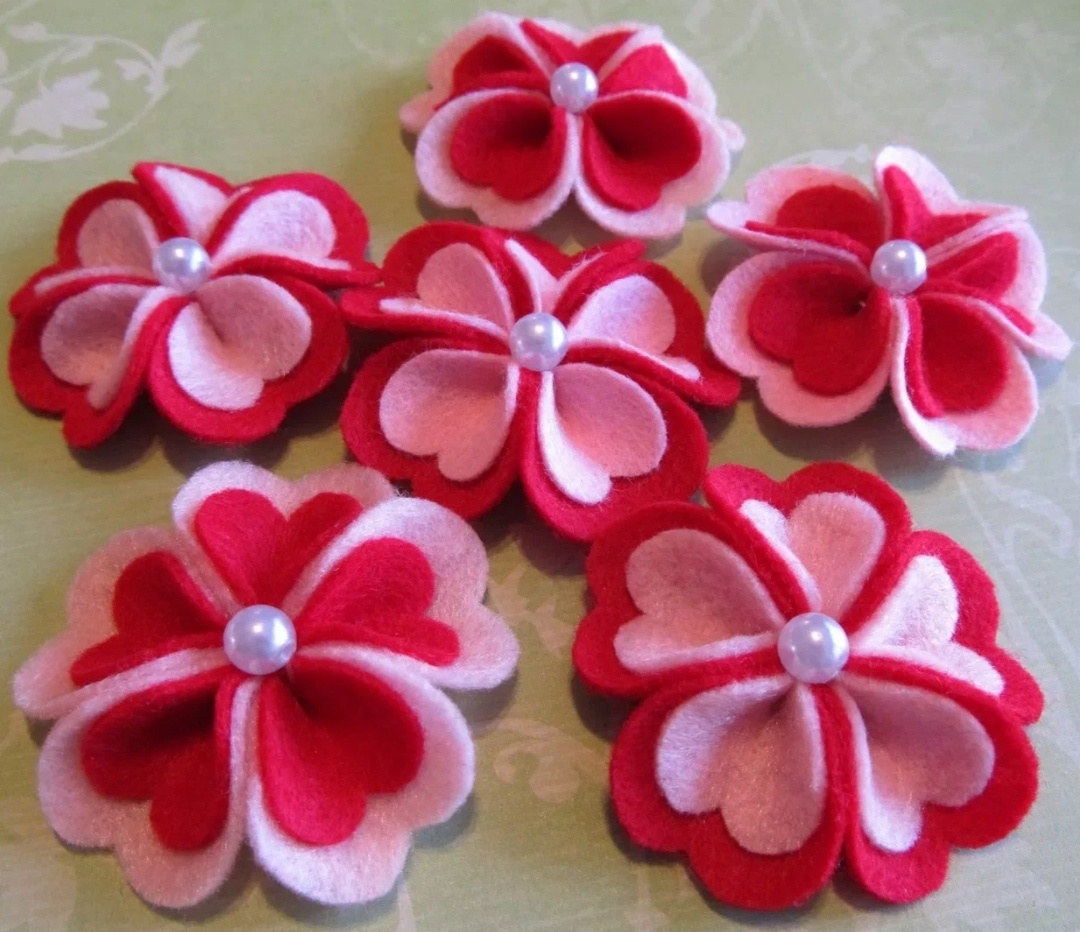 Экспериментируйте с разными тканями, цветами, размерами и формами лепестков. Используйте различные украшения для сердцевины цветка: пуговицы, бусины, бисер, стразы.