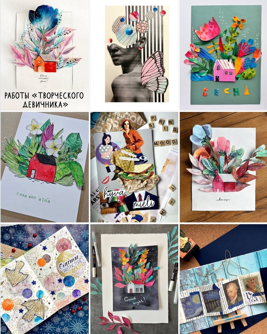 Мы перезимовали! Мы встречаем весну и готовы к новому! Творчество — оно для всех 🌸 сколько бы ни было вам лет, рисуйте, лепите, составляйте коллажи, ищите себя в искусстве! Перед вами галерея работ участниц «Творческого девичника» — нашего курса для взрослой аудитории. В них столько стиля, свободы, интереса к процессу и к себе ❤ Мы в восторге, дорогие наши девушки! Если вы ещё не в нашем уютном чатике, присоединяйтесь. Приходите сами и дарите «Девичник» своим подругам, мамам, сёстрам, учительницам.