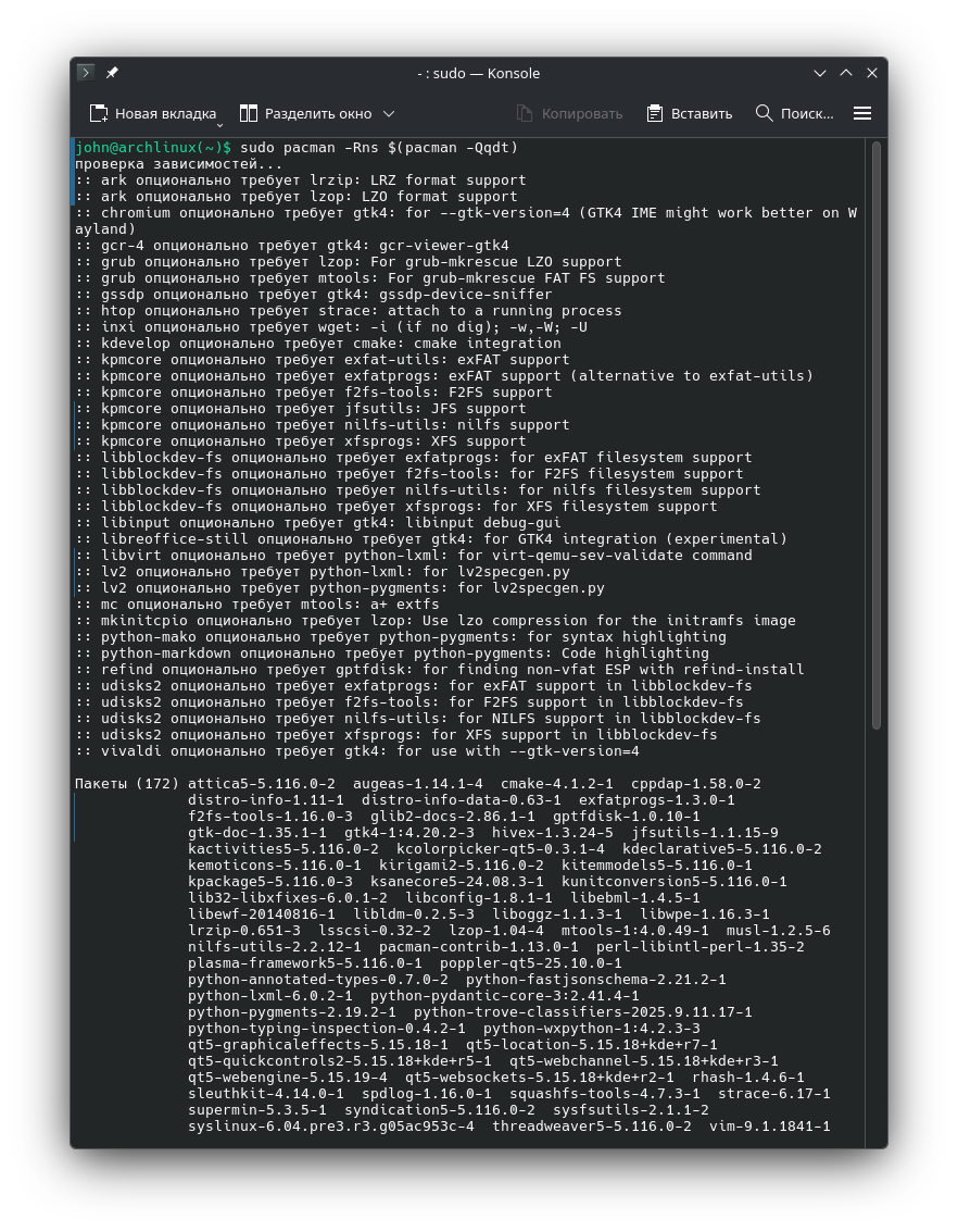 Добрый день дорогой читатель, данное повествование не является истиной в последней инстанции, это некая инструкция для начинающих которые перешли на Arch Linux. Действия будут происходить на Arch Linux с пояснениями и все возможными мыслями. Пакетный менеджер pacman использует систему флагов (ключей), состоящую из одной заглавной буквы для основной операции и одной или нескольких строчных букв для модификации этой операции. Ниже приведены основные ключи и примеры их использования в Arch Linux. Файл конфигурации располагается в /etc/pacman.conf в котором по мимо настроек пакетного менеджера прописаны репозитории Arch Linux. Синтаксис: sudo pacman [Флаг/ключи]