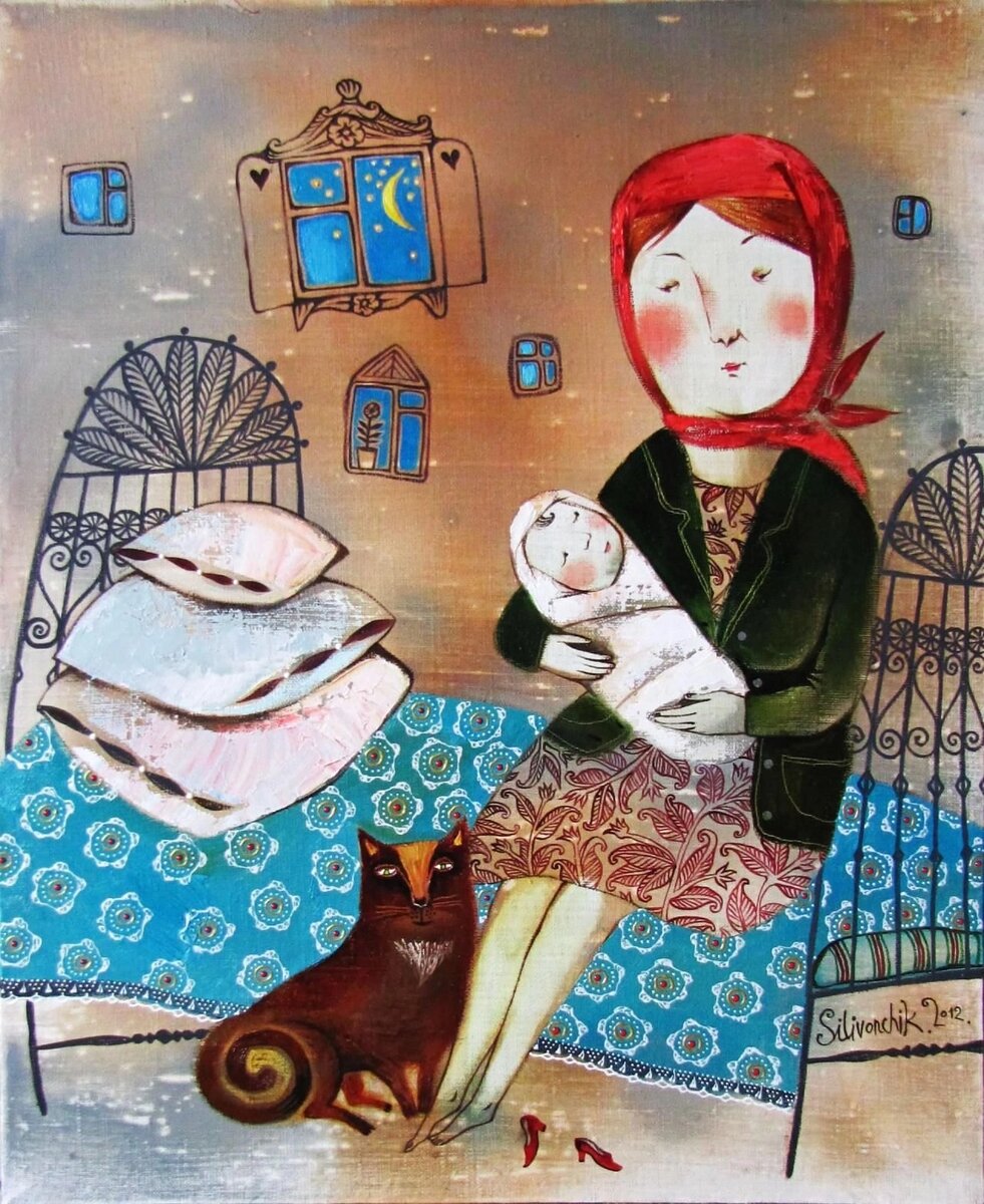 Ты помнишь голос мамы Как пела по ночам, К груди как прижимала, Гася собой печаль. Как голос укрывал тот, Питая средь ночи, Как сердце наполнял он Спокойствием судьбы. Он словно лучик света, Целил собой печаль, И переливом звуков Настраивал тебя. Спалось тогда спокойно, И голос тот ласкал, Как матерински руки, КолЫбал, колыбАл. Для каждого младенца, Нет слаще тех речей, Что в ласковых объятиях, Шептали средь ночей. Тот голос- мой источник, Питал меня, взывал, И колыбельной песни Мир в образах являл. 18.01.2025 Художник Анна Силивончик.