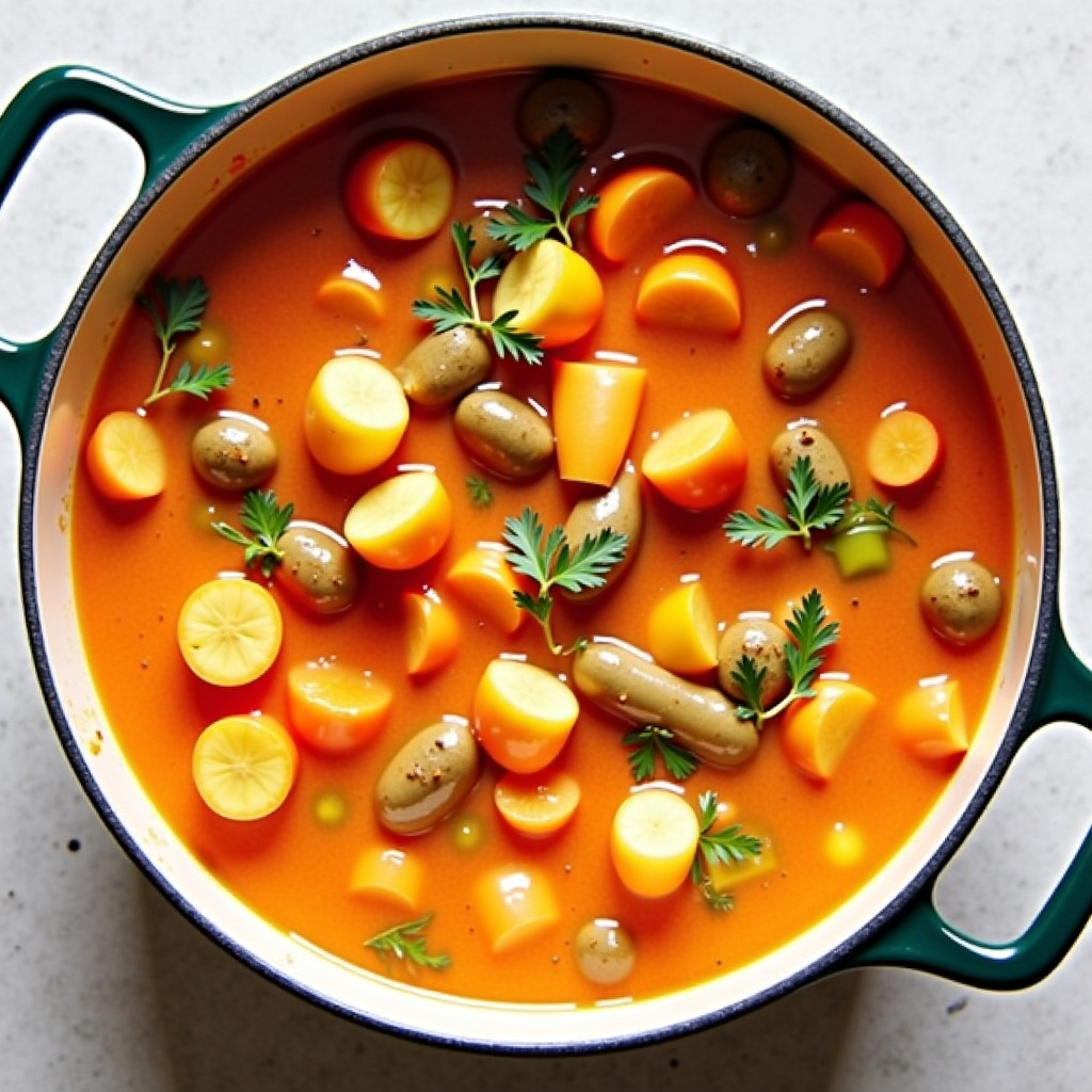 Картофельное рагу с сосисками — это не только сытное, но и очень вкусное блюдо, которое порадует вас и ваших близких. Оно простое в приготовлении и идеально подходит как для обеденного, так и для ужинного стола. Привлекательность этого рецепта заключается в его ярком вкусе, а также в простоте вариаций. Давайте подробнее рассмотрим, как приготовить это замечательное рагу с сосисками и овощами, а также поделимся некоторыми советами по его приготовлению. Ингредиенты Для приготовления картофельного рагу с сосисками в томатно-сливочном соусе вам понадобятся следующие ингредиенты: - Картофель — 800 г - Сосиски — 300 г - Морковь — 1 шт. - Сладкий перец — 1 шт. (желательно красный или желтый для яркости) - Сельдерей — 2 стебля - Томатное пюре — 200 г - Сливки — 150 мл - Лук репчатый — 1 шт. - Чеснок — 2 зубчика - Паприка — 1 ч. ложка - Итальянские травы — 1 ч. ложка - Соль и перец — по вкусу - Оливковое масло — для жарки Приготовление Шаг 1: Подготовка ингредиентов 1. Начните с подготов