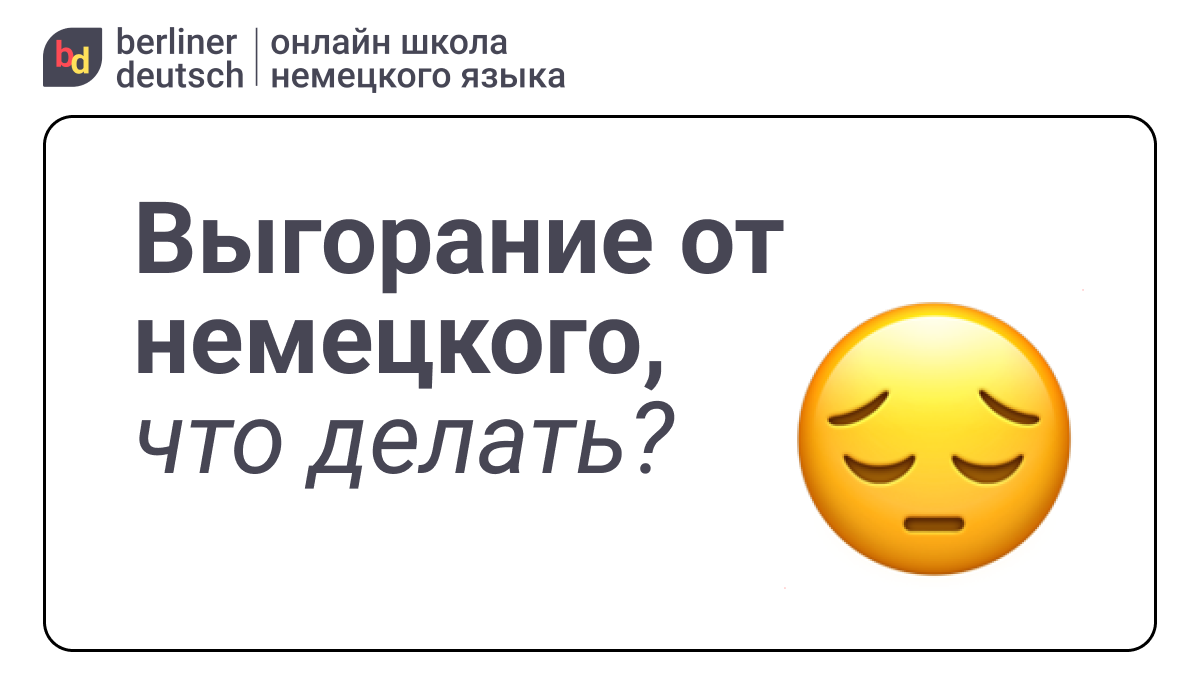 У каждого из нас бывает чувство усталости, в том числе от изучения немецкого. Иногда достаточно сделать перерыв на пару дней или забить на домашку (вы этого не слышали 🤫). Но бывает такое, что силы настолько заканчиваются, что от немецкого уже просто тошнит и даже слышать о занятиях и подготовке к экзамену не хочется. Такие "симптомы" могут говорить уже о выгорании при изучении немецкого. 🔴 Что такое выгорание? Выгорание - это состояние физического и эмоционального истощения, которое возникает вследствие продолжительного периода стресса, перегрузки и недостатка поддержки. 🔴 Почему оно может возникнуть при изучении иностранного языка? Выделяют разные факторы, причем они часто дополняют друг друга: 😭 слишком большая нагрузка и очень интенсивный темп изучения 😭 неподходящий конкретно вам метод обучения 😭 однообразные и монотонные упражнения 😭 отсутствие поддержки 😭 потеря мотивации 🔴 Какие симптомы? Постоянная усталость, сонливость или проблемы со сном (например, когда немецкие с