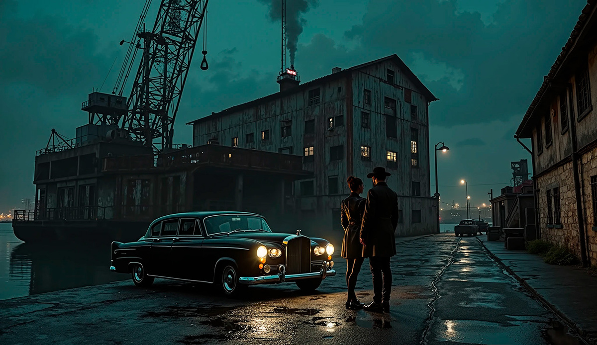 Ночь над рекой была густой, как чернила, разлитые по старой бумаге. Старый склад стоял на краю города, его ржавые стены и выбитые окна молчаливо хранили следы забытых дней. Виктор и Лилия подъехали на её машине — чёрном седане, который выглядел слишком чистым для этого места. Она припарковалась в тени, выключила фары, и тишина обрушилась на них, нарушаемая только далёким плеском воды и скрипом металла на ветру.