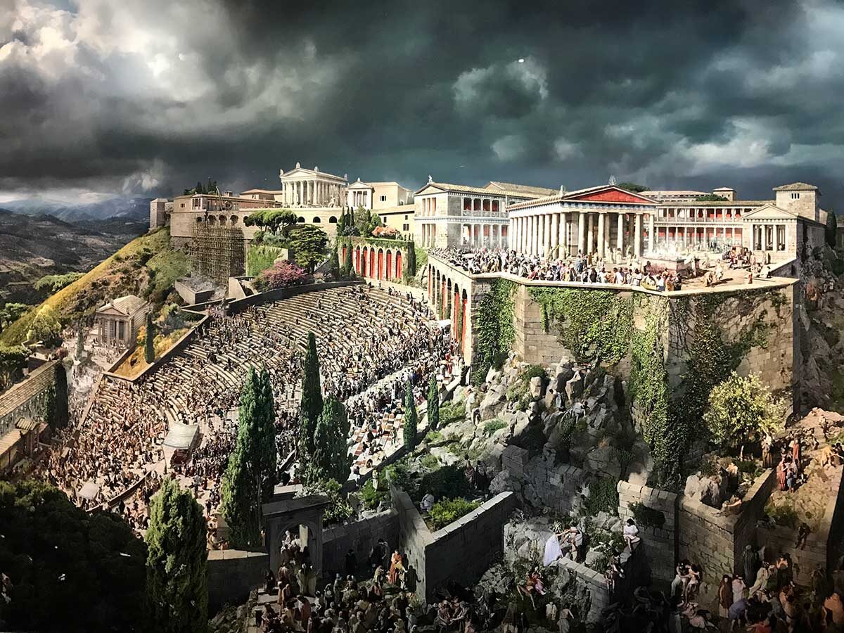 - Гимнасий — образовательный центр для знати с подземными переходами и храмами Деметры и Геры.