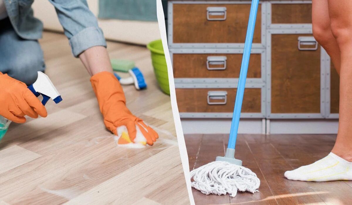 Никаких разводов на полу и чистые носки: что добавить в воду для мытья полов