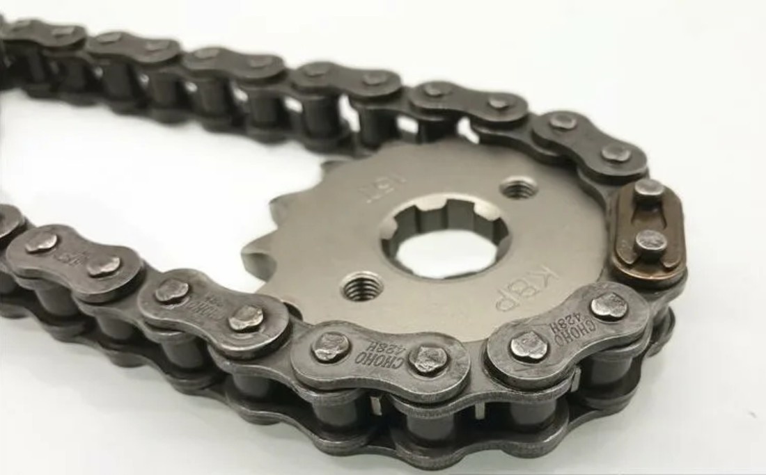 При соприкосновении звездочки с цепью, ролик прокатывается по зубцу, таким образом достигается снижение износа цепи и общее повышение КПД системы.