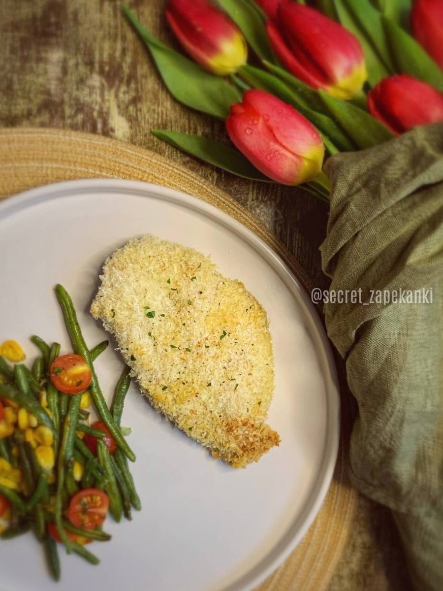 Хрустящая куриная грудка со стручковой фасолью и кукурузой