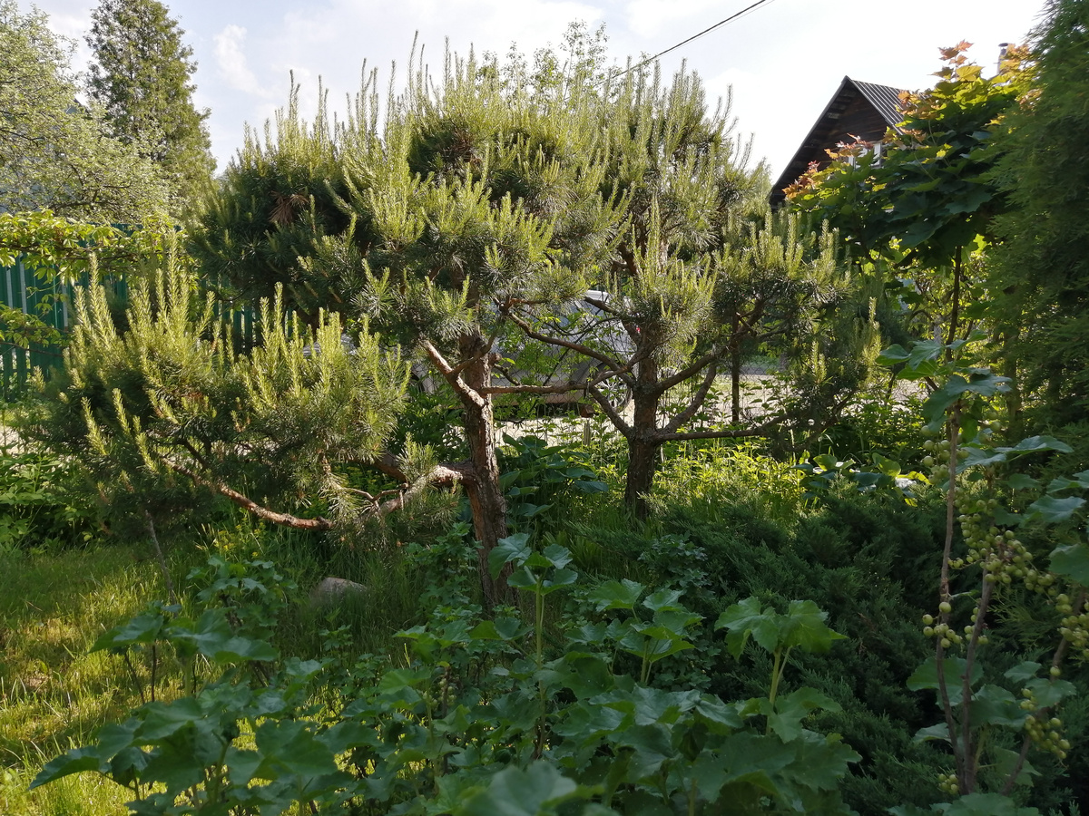 Пока работала, муж ухитрился меня за работой сфоткать. Так что теперь тот день останется, в фото на память. Делюсь, раз уж есть фотохроника. Вид у меня, конечно, не парадный, но я и не собиралась позировать. Надо было дело сделать. Сделала. Сначала я статью назвала "Стригу сосну в начале лета". Оказалось, что почти никому не интересно, не читают. Так что название исправила. Может, так будет проще найти через поисковик? День был жаркий. А место там солнечное. Пришлось дожидаться вечера и только тогда приступать. Почему я в кофте, раз день жаркий? Дело в том, что эта кофта у меня как раз для самых грязных работ. А стрижка сосен - дело очень грязное. Смола! А смола - практически не выводимая с одежды штука. Из-за смолы и перчатки садовые самые старые. Без перчаток никак! И очки на этой садовой работе там специально старые, давно на дачу сосланные. Т.к. та же проблема - смола. Нормальные "городские" очки в сторону, а эти, старые-престарые, на нос. Не позировала специально. Но знала, ч
